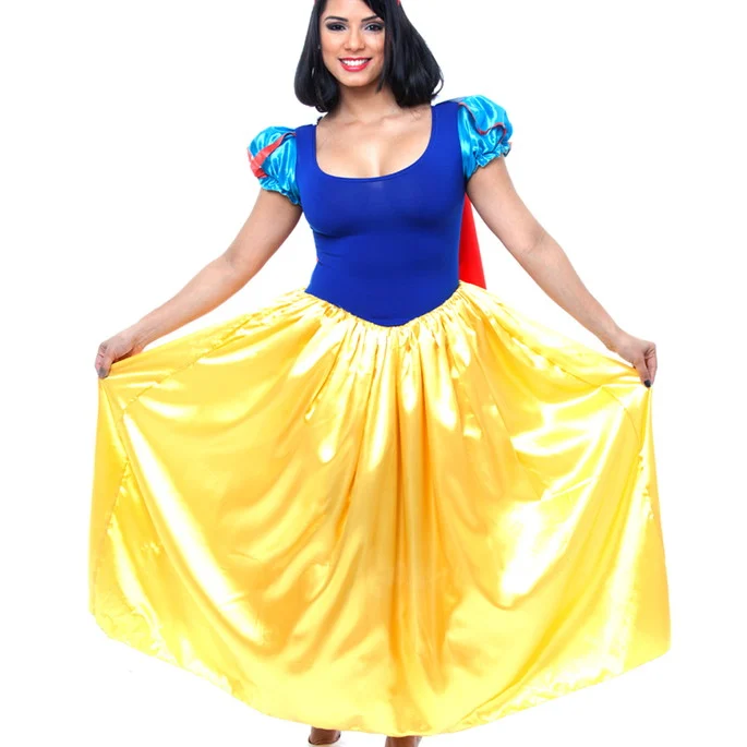 A Fantasia Branca de Neve Adulto é a escolha perfeita para quem deseja brilhar em festas à fantasia, eventos temáticos ou até mesmo em um carnaval inesquecível. Com um design encantador que remete à clássica personagem da Disney, esta fantasia é feita com materiais de alta qualidade, garantindo conforto e durabilidade. O vestido possui um corpete azul vibrante, mangas bufantes em tons de azul e vermelho, e uma saia longa em um amarelo radiante que traz todo o glamour da história.